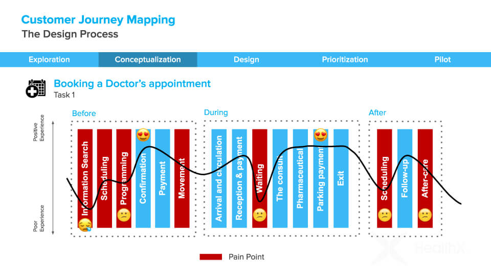 This journey map helped align stakeholder expectations with actual user needs, ensuring HealthX addressed the complete home visit experience rather than just the booking transaction.